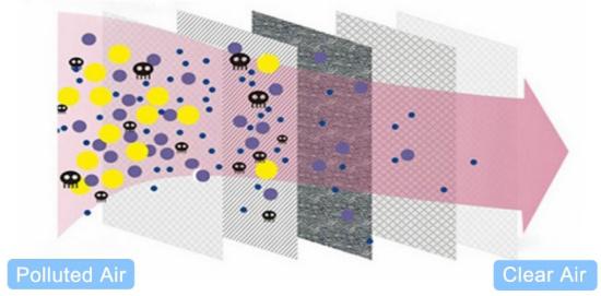 2.5 micron filters are effective against pollution, exhaust, smoke, dust, pollen, allergens, and pathogens (bacteria and viruses).