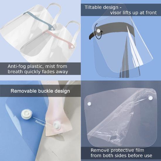 Wearing a visor can help to stop touching your face. The visors are easily sterilised for re-use by removing the strap and washing in hot soapy water.